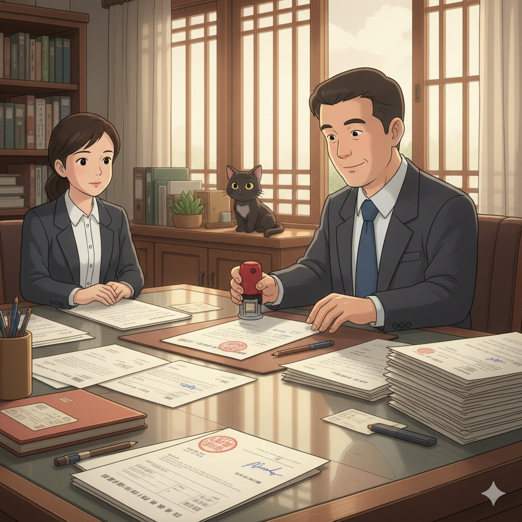 • 간인 필수: 여러 장의 서류는 반드시 앞뒤 페이지를 겹쳐 도장을 찍어 내용 변경이 없음을 증명하세요.
